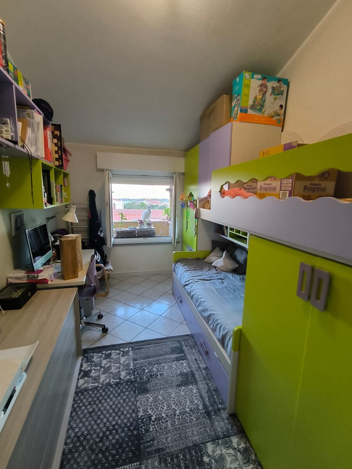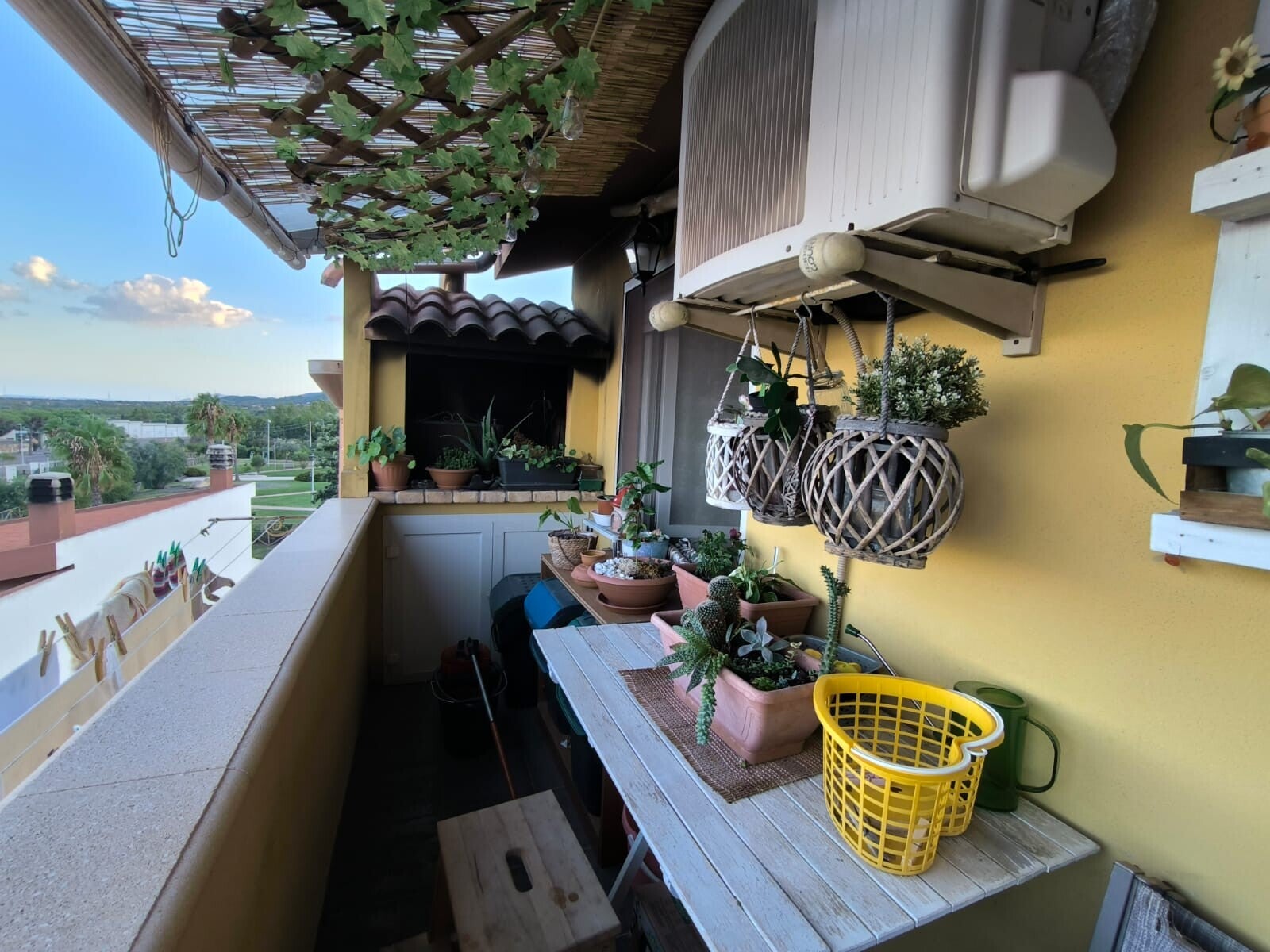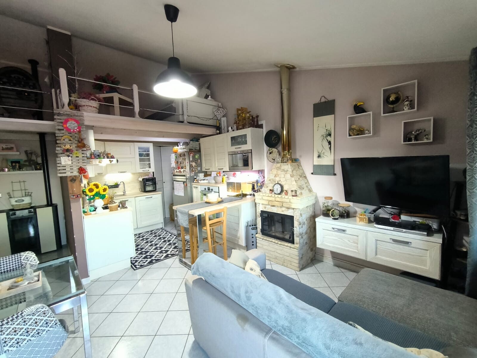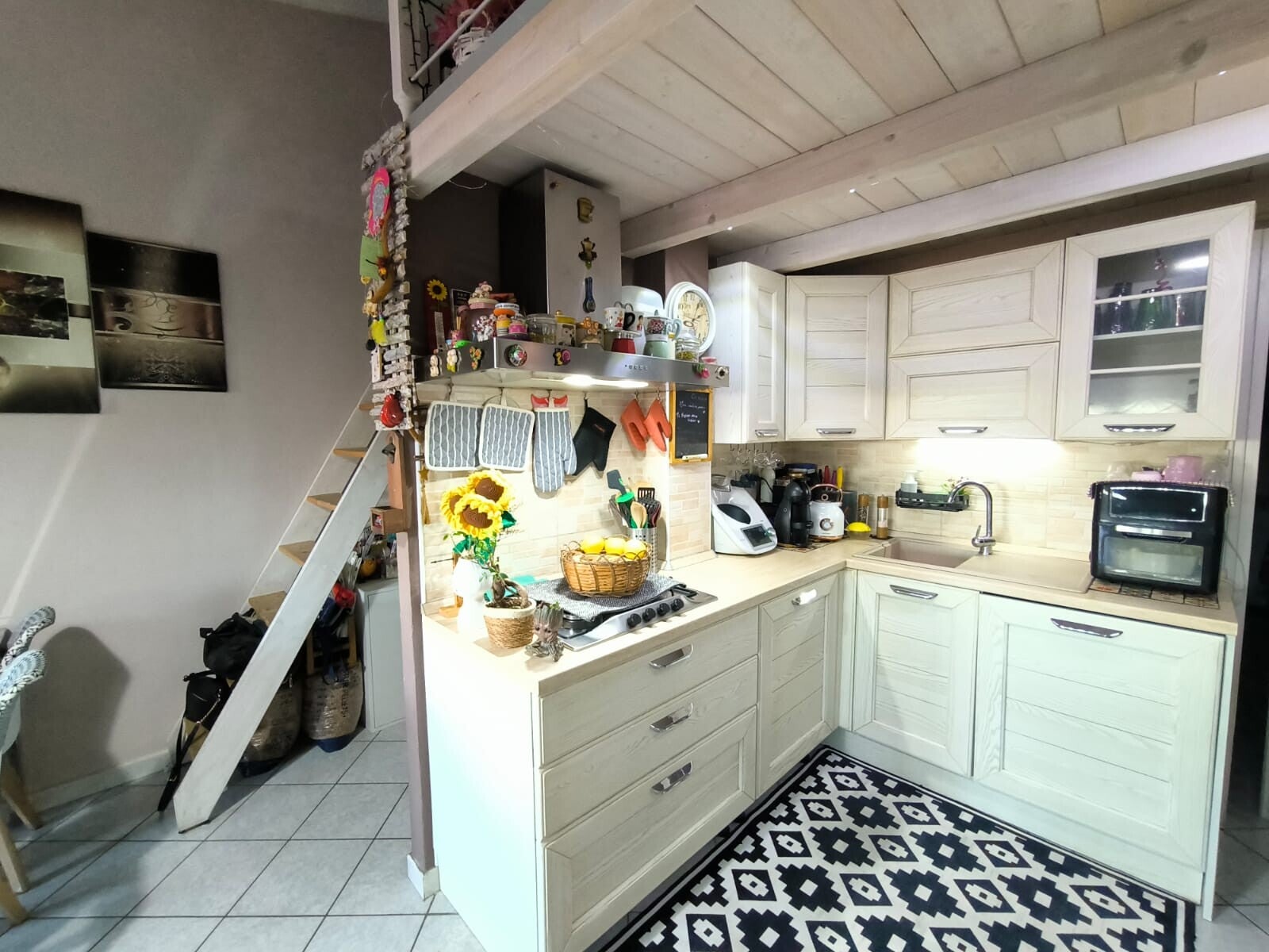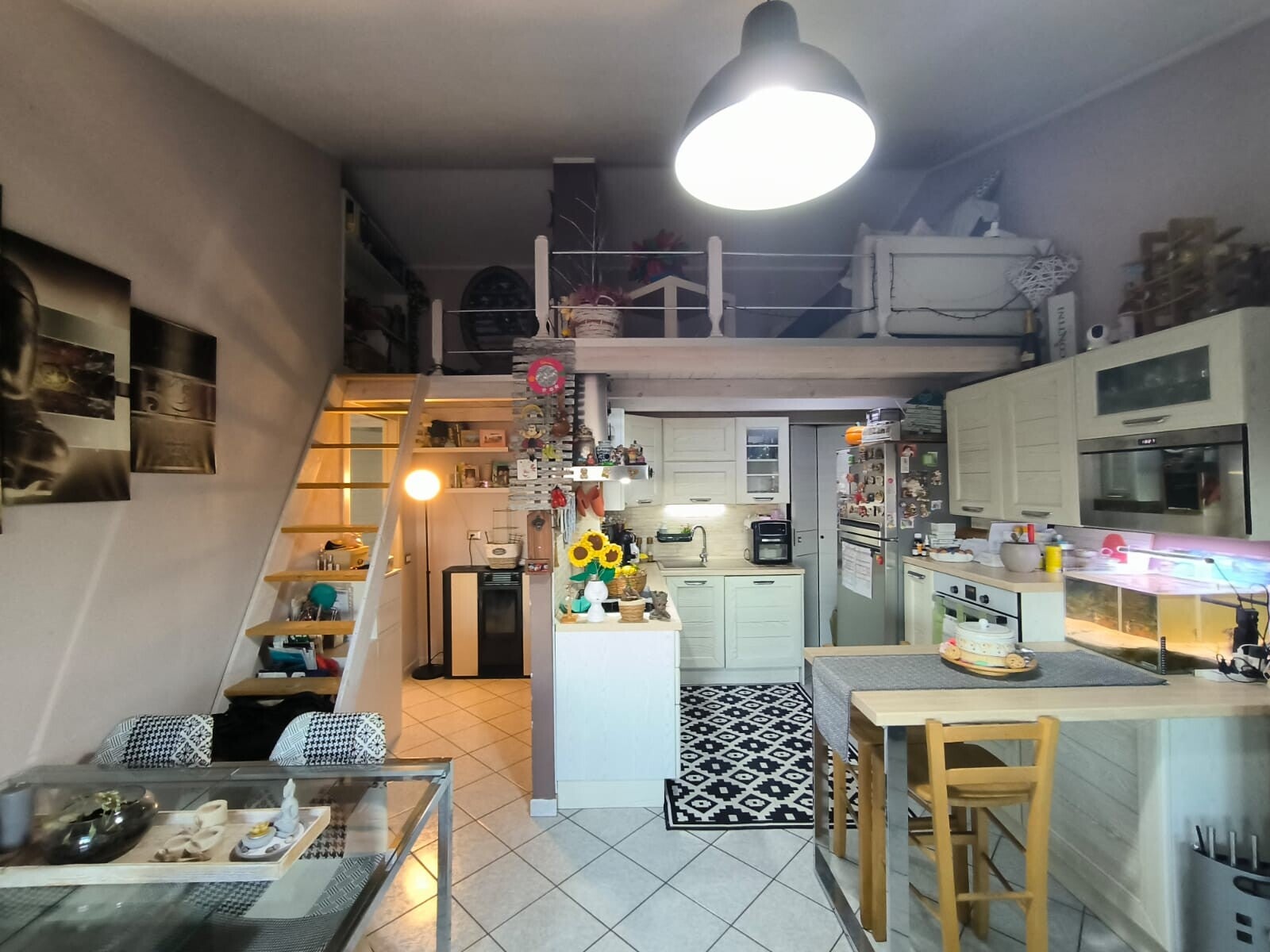L'appartamento si compone di due ampie camere da letto e un bagno elegante con doccia e doppio lavandino. La zona cottura a vista è completa di dispensa, mentre il corridoio e parte della zona giorno sono stati soppalcati conferendo un tocco di originalità all'ambiente creando una zona multifunzione. La proprietà include anche un ripostiglio nella zona notte e un barbecue per le tue serate estive all'aperto.